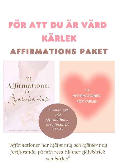 Quick Shop Home of Lovelights Affirmationspaket med 162 Kärleksfulla Affirmationer – För att Du är värd all kärlek 💖 Få 40 kr rabatt när du köper båda samtidigt! 160 kr Quick Shop